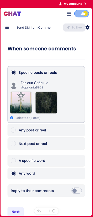 Automatically reply to positive comments with reactions to boost engagement and show appreciation.